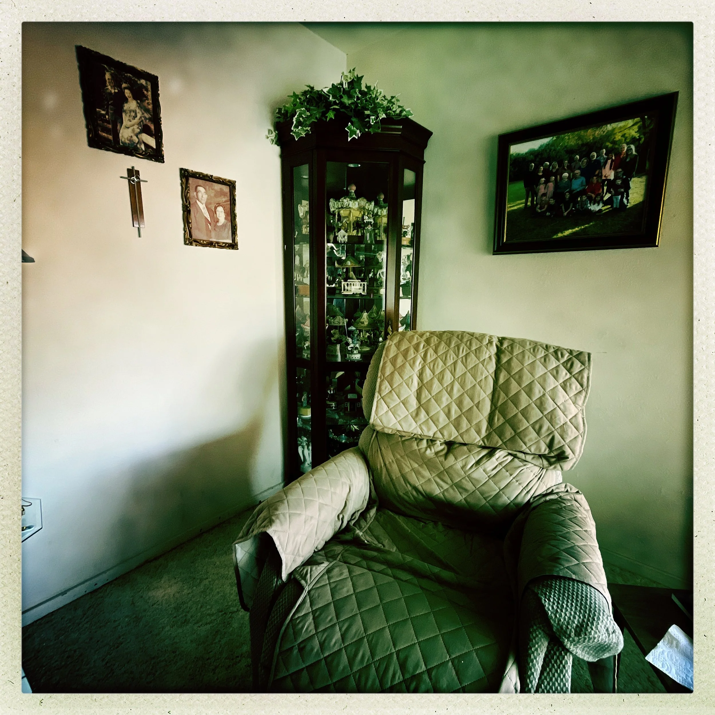 The source of Bev’s pain was multiple myeloma. It had metastasized into her spine between her shoulder blades. Vicodin, Dilaudid, Tylenol, then ultimately Fentanyl patches and liquid Oxycodone managed the pain. We all wanted Bev to be able to go home to the beloved recliner that had fit her like a shell. But I feared that hermit crab had outgrown the recliner and her new shell would be a hospital bed. That would work as long as it was in her living room, looking out her picture window.